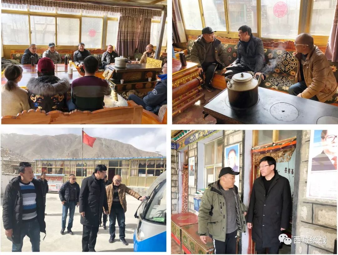上午,尼玛多吉一行走进仁布县贡热村、玉拉村区党委统战部驻村点,听取驻村工作队汇报;下午,深入浪卡子县道布龙居委会看望慰问驻村干部。每到一处,尼玛多吉向坚守在工作一线的驻村干部送去了慰问金,敬献了哈达,送上了新春祝福,表达了部务会和旦科常委对驻村工作队的亲切关怀。