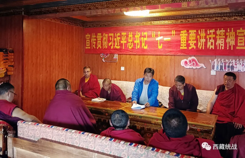 8月10日,县委统战党支部召开会议,专题传达学习习近平总书记“七一”重要讲话和在西藏视察时重要讲话精神。8月8日至8月12日,各寺管会组织寺庙僧尼传达学习习近平总书记“七一”重要讲话和在西藏视察时重要讲话精神。