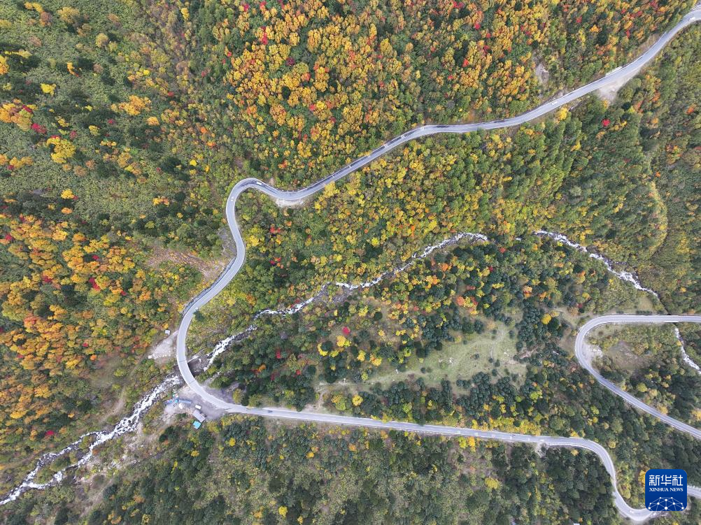 这是10月28日在林芝市巴宜区拍摄的色季拉山秋景(无人机照片)。华社记者 卢丹阳 摄