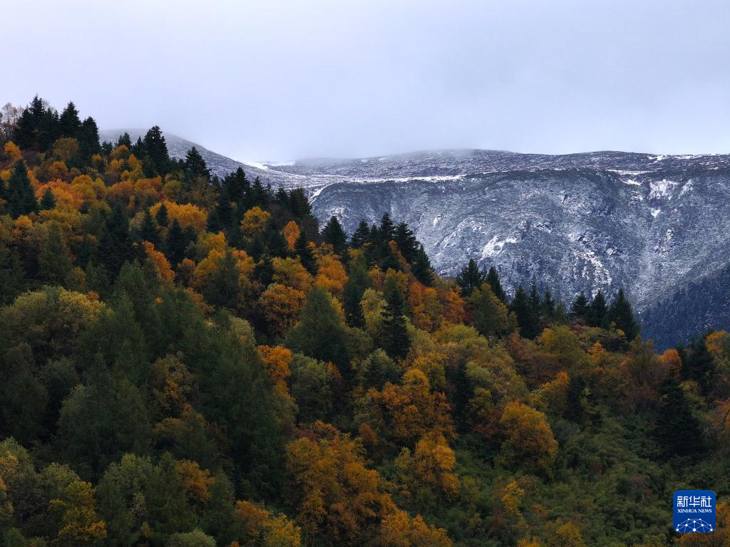 这是10月28日在林芝市巴宜区拍摄的色季拉山秋景(无人机照片)。新华社记者 卢丹阳 摄